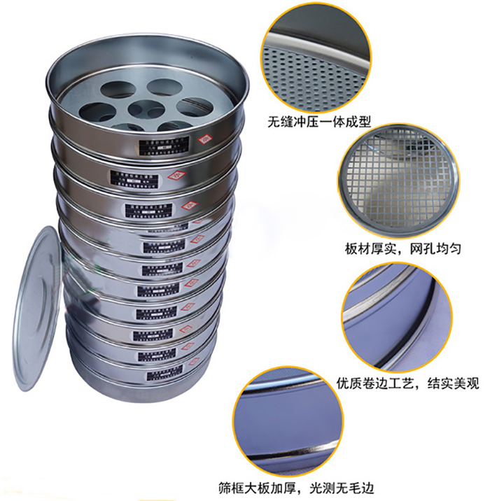 φ200mm (10只/套+底蓋)0.075、0.25、0.5、1.0、2.0、5、10、20、40、60mm標準篩框材質(zhì):由不銹鋼板、黃銅板、冷軋鐵皮(鍍鉻或鋅),塑料等材料構成。采用一次沖壓成型,篩框平整、光潔度高、套篩組裝互換。